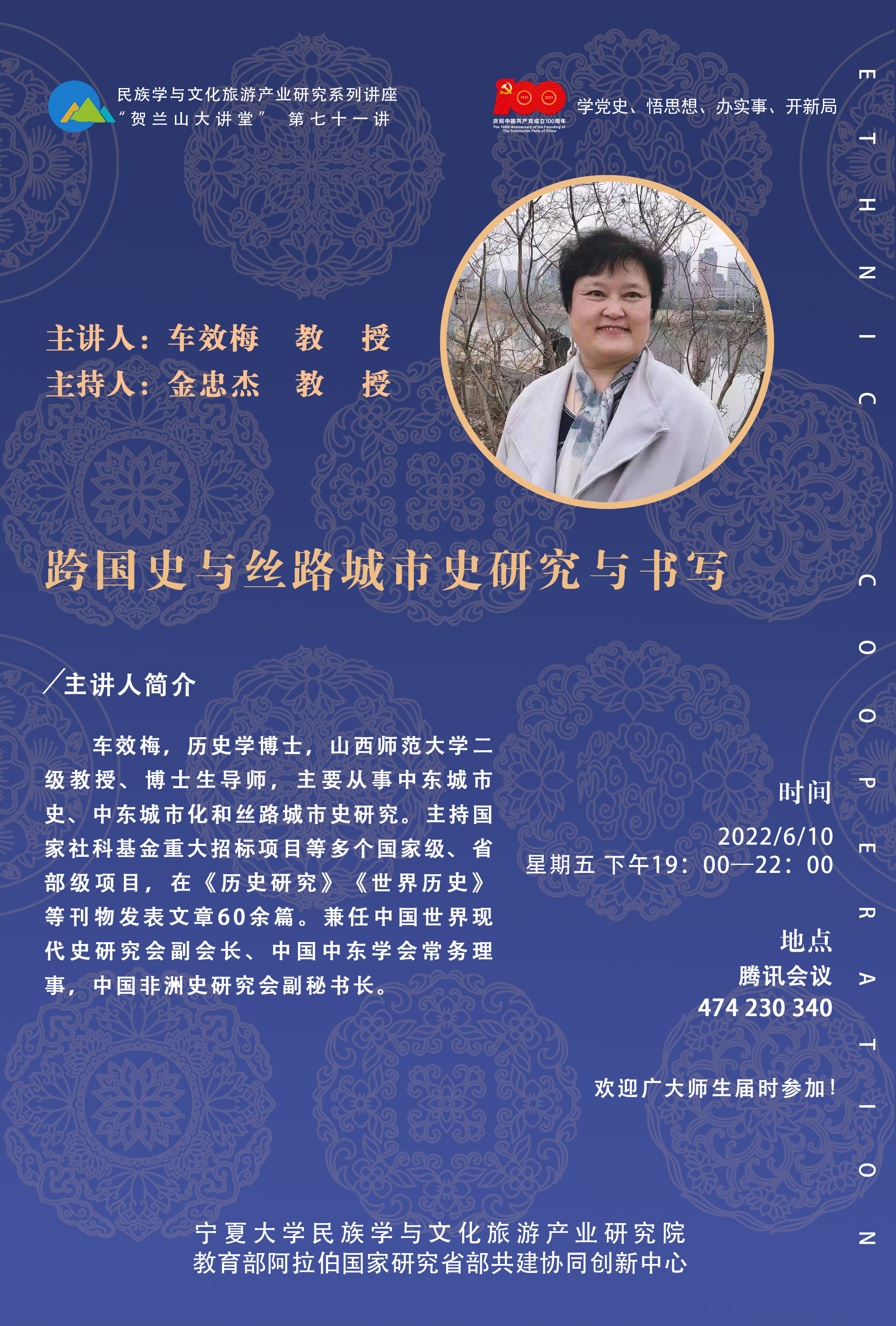 上一条:车效梅教授为环球娱乐 开展题为 “跨国史与丝路城市史研究与书写”的讲座 下一条:民族学与文化旅游产业研究系列讲座“贺兰山大讲堂”第七十讲