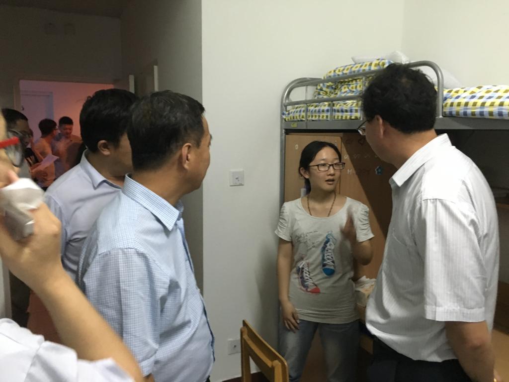 学院领导来到学生公寓5号楼、10号楼以及20号楼看望新生,了解他们到入校后的生活情况。