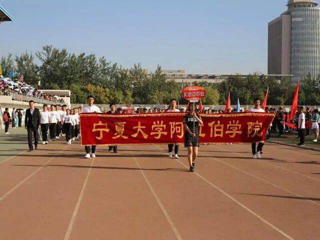 大一年级学生组成了学院的代表方阵,参加了运动会开幕式。