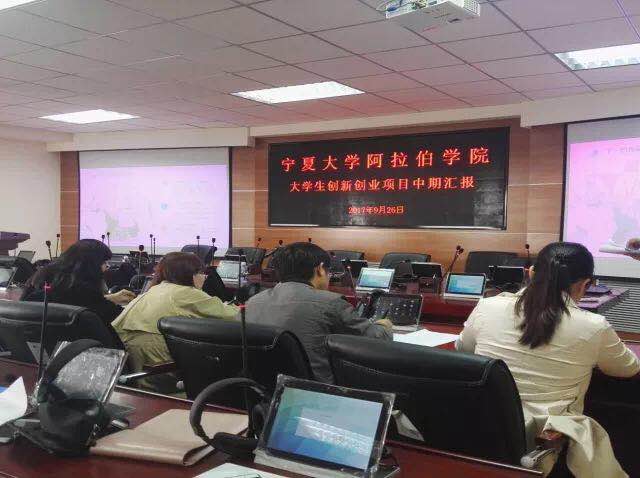 2017年9月26日,环球娱乐 大学生创新创业校级项目中期汇报会在学院报告厅举行,学院副院长白楠老师、教研室副主任王艳老师、刘东宁老师担任答辩会评委,环球娱乐 所有的校级大创项目的主持人依照相关规定分别进行项目PPT讲解,并接受评委提问,进行项目答辩。