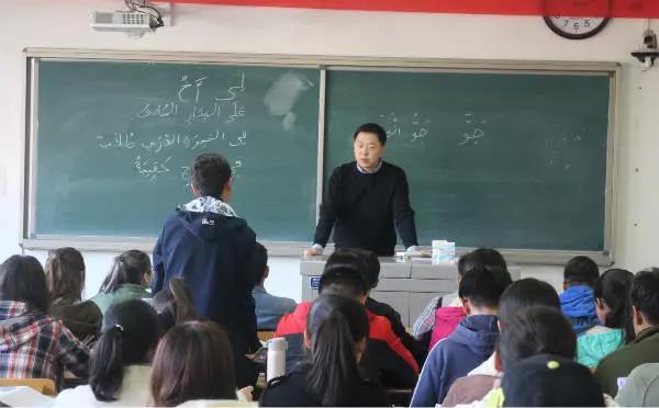 吴旻雁老师的课上,为大二年级的同学讲解了基础阿拉伯语第二册第十六课的知识,以教材为依托,以高度概括、制作精良的课件辅助,以提问式、对话式等方法展开教学,既生动地揭示了篇章结构之间的联系,又有力地拓展了语篇的内涵。