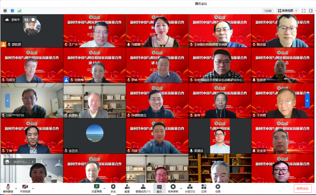 与北京海陆经济发展安全战略研究中心联合承办的“新时代中国与阿拉伯国家高质量合作研讨会”以线上会议的方式召开。