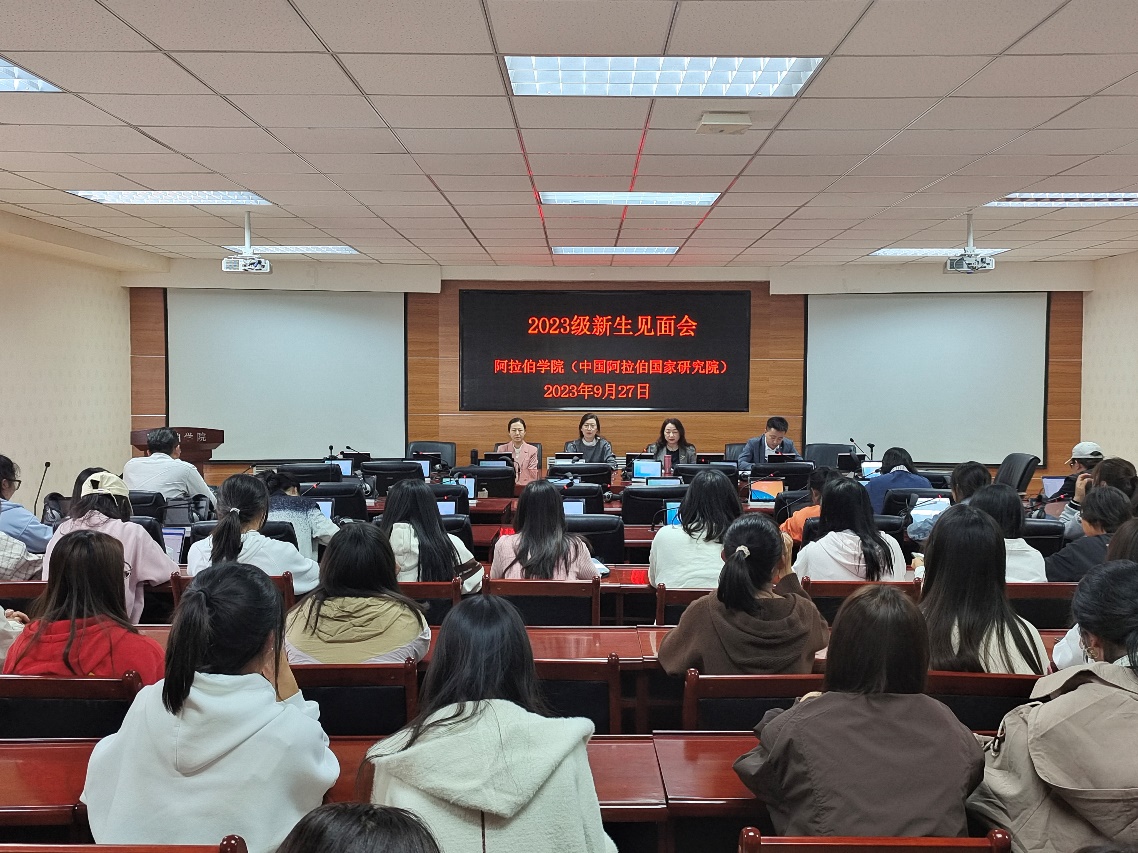 首先党总支书记冯璐璐代表学院致辞,对新同学的加入表示欢迎,她回顾了学院发展至今的历程,分享了在学科建设、专业建设、师资队伍建设等方面取得的成就,并介绍了学院整体发展现状与规划,对新生发表开学寄语,希望学生不负韶华,以梦为马,追逐梦想。接着各位老师进行了自我介绍并表达了对新生的寄语,鼓励新生刻苦学习,掌握阿拉伯语学习技巧、勉励他们要认真学习、坚持不懈、学会沟通、懂得感恩,在大学生活中不断完善自己,为未来打下坚实的基础。