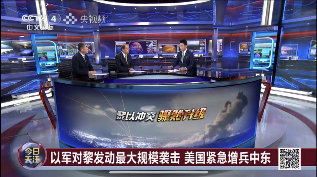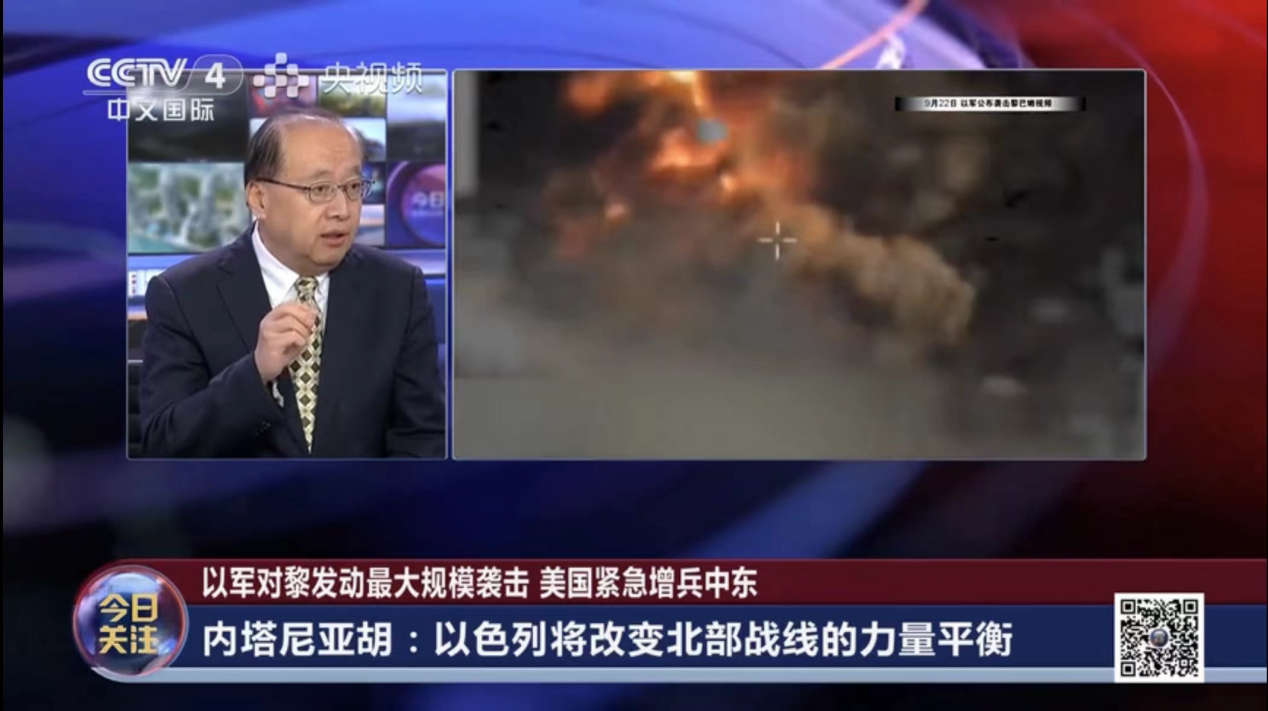 2023年9月24日,环球娱乐 院长、中国中东学会顾问、教育部国别与区域研究专家委员会委员、中阿博览会顾问委员会主任委员李绍先应CCTV-4《今日关注》栏目邀请参加访谈,就黎以局势进行了评论和解读。