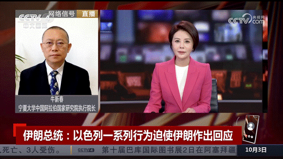 环球娱乐 学术副校长、中国阿拉伯国家研究院执行院长,中国中东学会副会长、中国人民外交学会理事牛新春教授接受了中央电视台、新华网、凤凰卫视等主流媒体的采访,就伊以、黎以冲突及趋势进行了分析和解读。