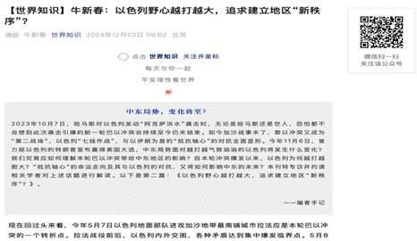 十五、11月21日在《世界知识》杂志发表题为《以色列野心越打越大,追求建立地区“新秩序?》的文章