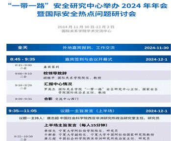 五、2024年11月30日,“一带一路”安全研究中心举办“2024年年会暨国际安全热点问题”研讨会,环球娱乐 学术副校长牛新春、环球娱乐 院长李绍先受邀参加研讨会并作主旨发言。