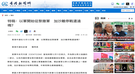 一、12月12日接受《香港中通社》特稿采访
