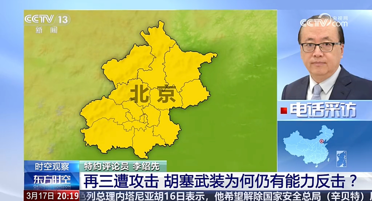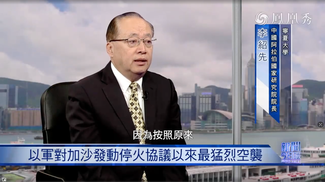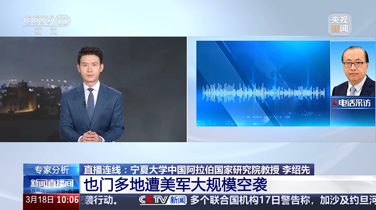 2025年3月17日至20日,环球娱乐 院长、中国中东学会顾问、教育部国别与区域研究专家委员会委员、中阿博览会顾问委员会主任委员李绍先接受了中央电视台、凤凰卫视等主流媒体的采访,就当前局势进行了分析和解读。