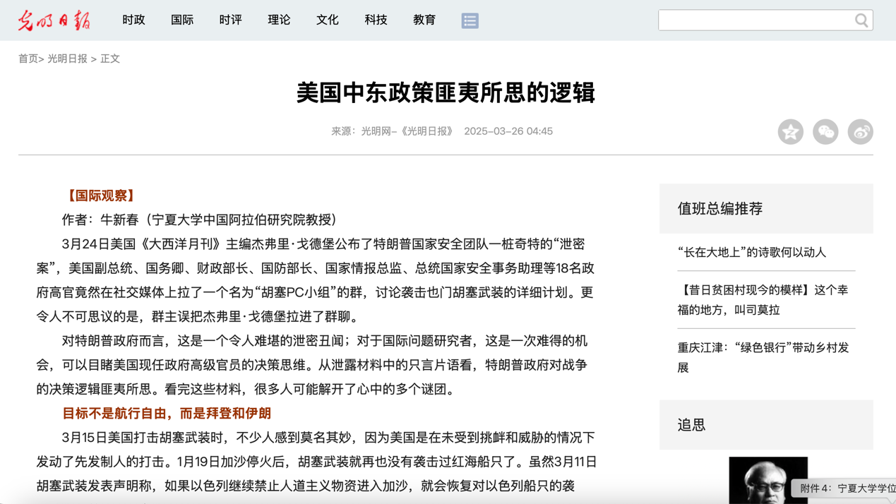 十三、3月26日牛校长在光明日报发表题为《美国中东政策匪夷所思的逻辑》文章