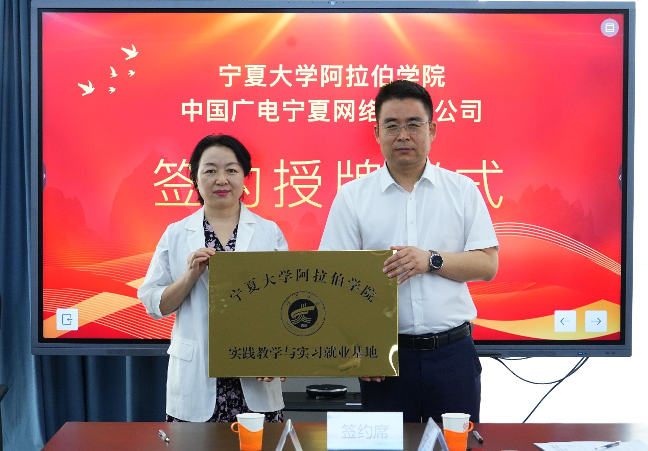 与中国广电宁夏网络有限公司举行校企合作签约暨实习就业基地揭牌仪式。环球娱乐