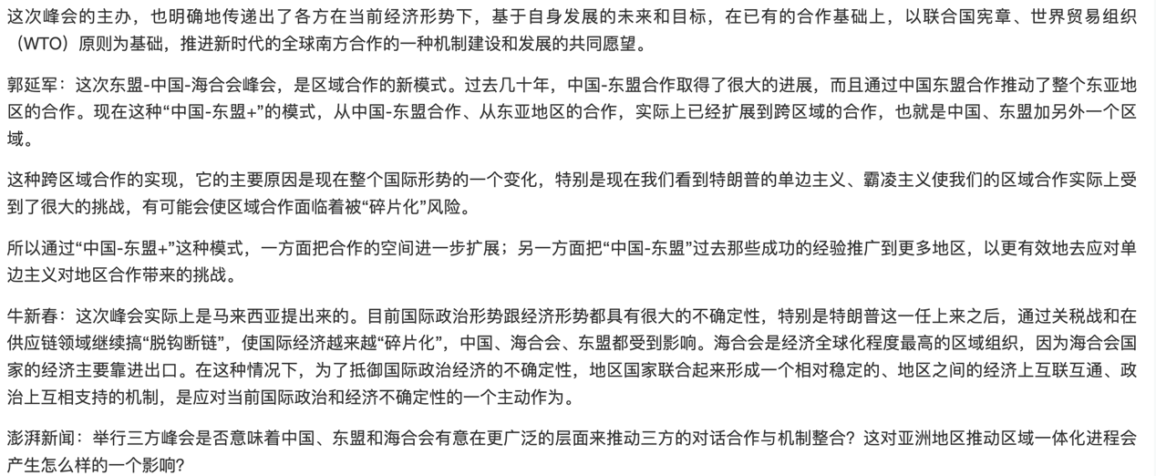 三、5月29日接受澎湃新闻采访,报道题为《东盟-中国-海合会开启“全新篇章”,为“全球南方”更好合作提供样板》