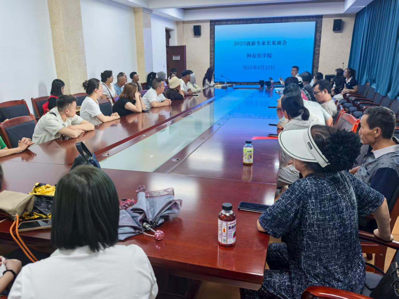 然后,学院副院长白楠、副院长周丽娅、副书记冯燚分别作了发言。副院长白楠针对本科生培养状况进行了交流。她将阿拉伯语在本科阶段的学习比作一条路,向家长们介绍外语作为一门技能的不可替代性作用,介绍了学院本科学科建设状况,打消了家长对阿拉伯语的偏见;副院长周丽娅向新生及家长介绍了学院研究生专业设置、培养模式,重点介绍了学院硕士点建设情况及本硕博一体化培养情况;副书记冯燚从就业形式、就业率等方面介绍了学院毕业生就业情况,指出近年来阿拉伯语专业就业率始终保持在93%的左右,实现了高质量就业。他勉励2025级新生务必做好学业规划,针对自身情况打造一份适合自己发展的未来计划。