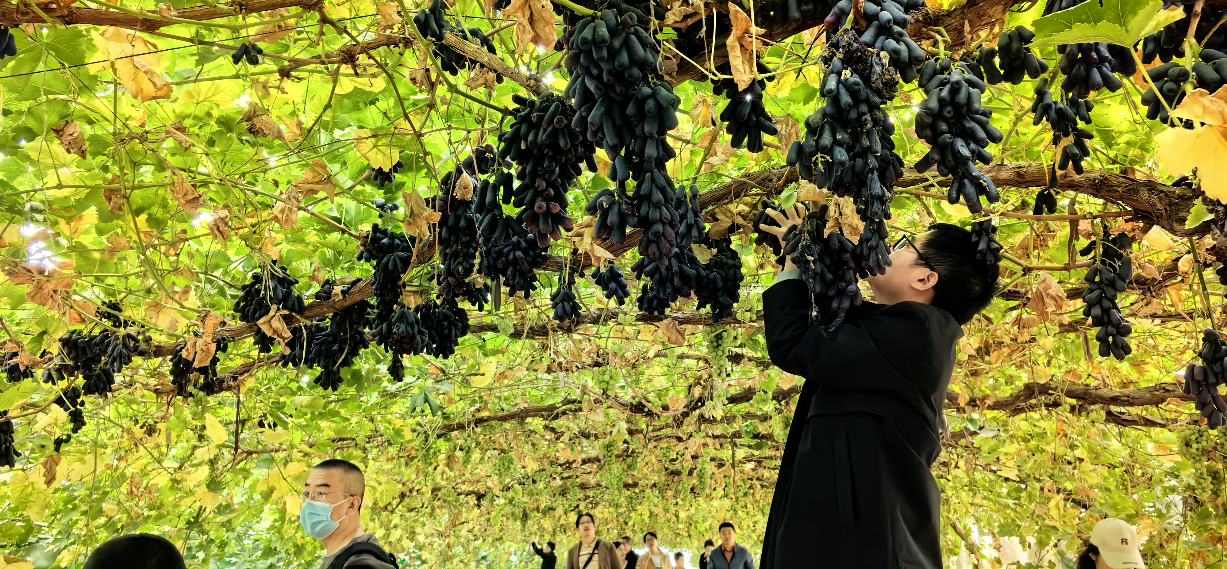 上午8时20分,全体人员统一乘车前往吴忠市。首站抵达龙家湾葡萄观光园,在工作人员指导下开展葡萄采摘体验活动。通过亲身参与农事劳作,全体教师切身感受农业生产实践,进一步强化了劳动意识。随后前往吴忠宁杨公司参观考察,系统了解特色产品生产工艺流程及市场运营情况。中午时分,组织前往刘三朵茶馆与牛家坊民俗文化街,实地体验西北地区饮食文化特色。