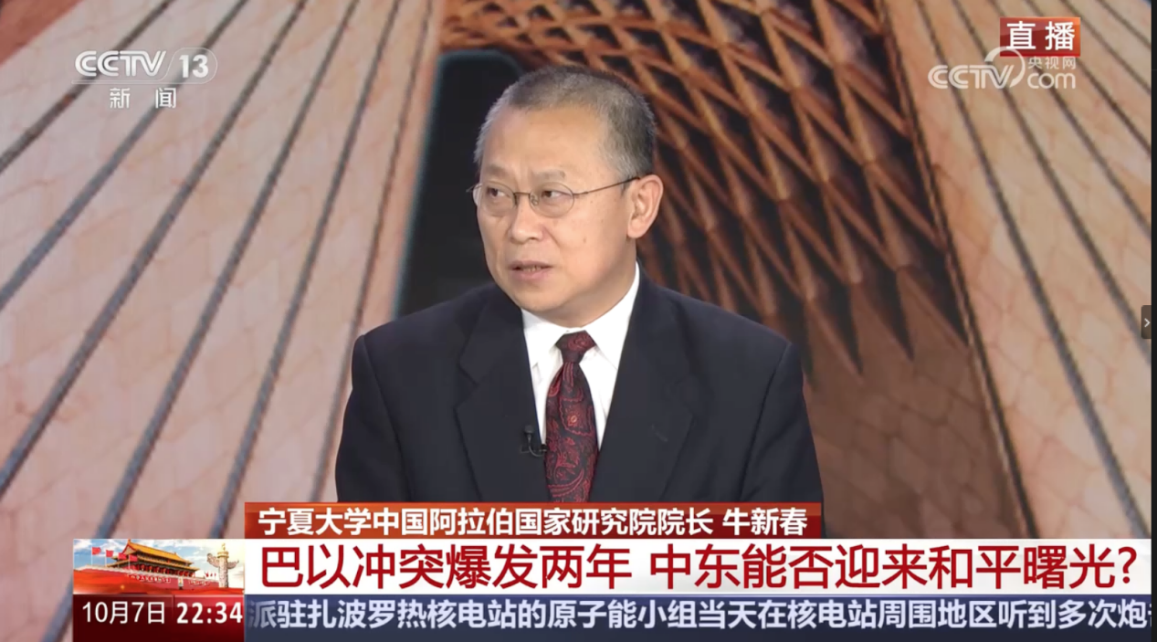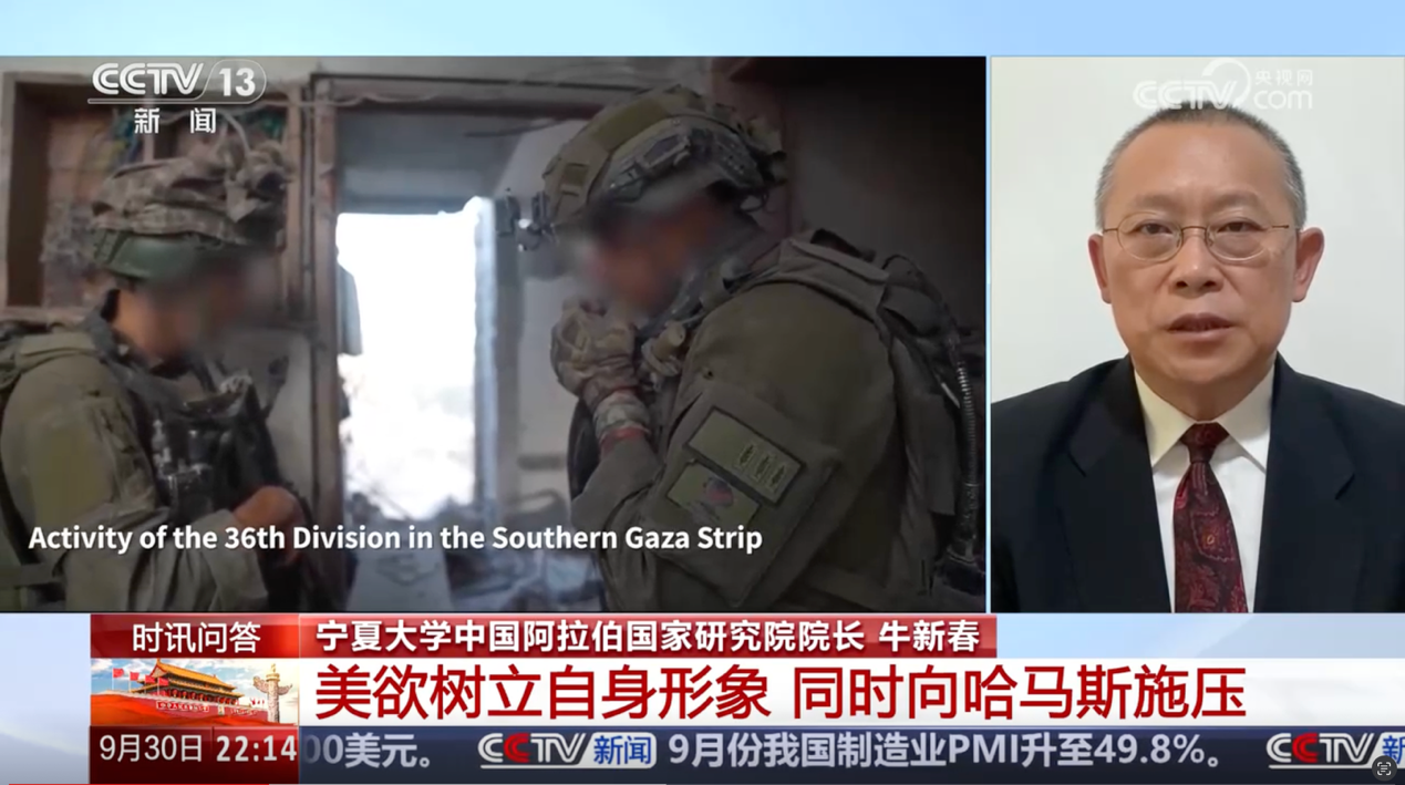 二十三、10月5日牛校长接受中央广播电视总台环球资讯广播《闪评》栏目题为《以色列与哈马斯马上要谈了!谈什么?怎么谈?》采访