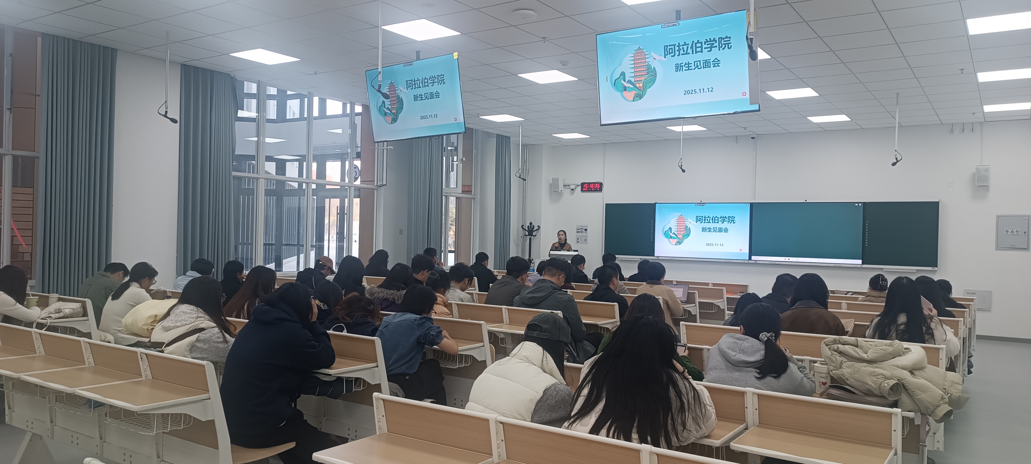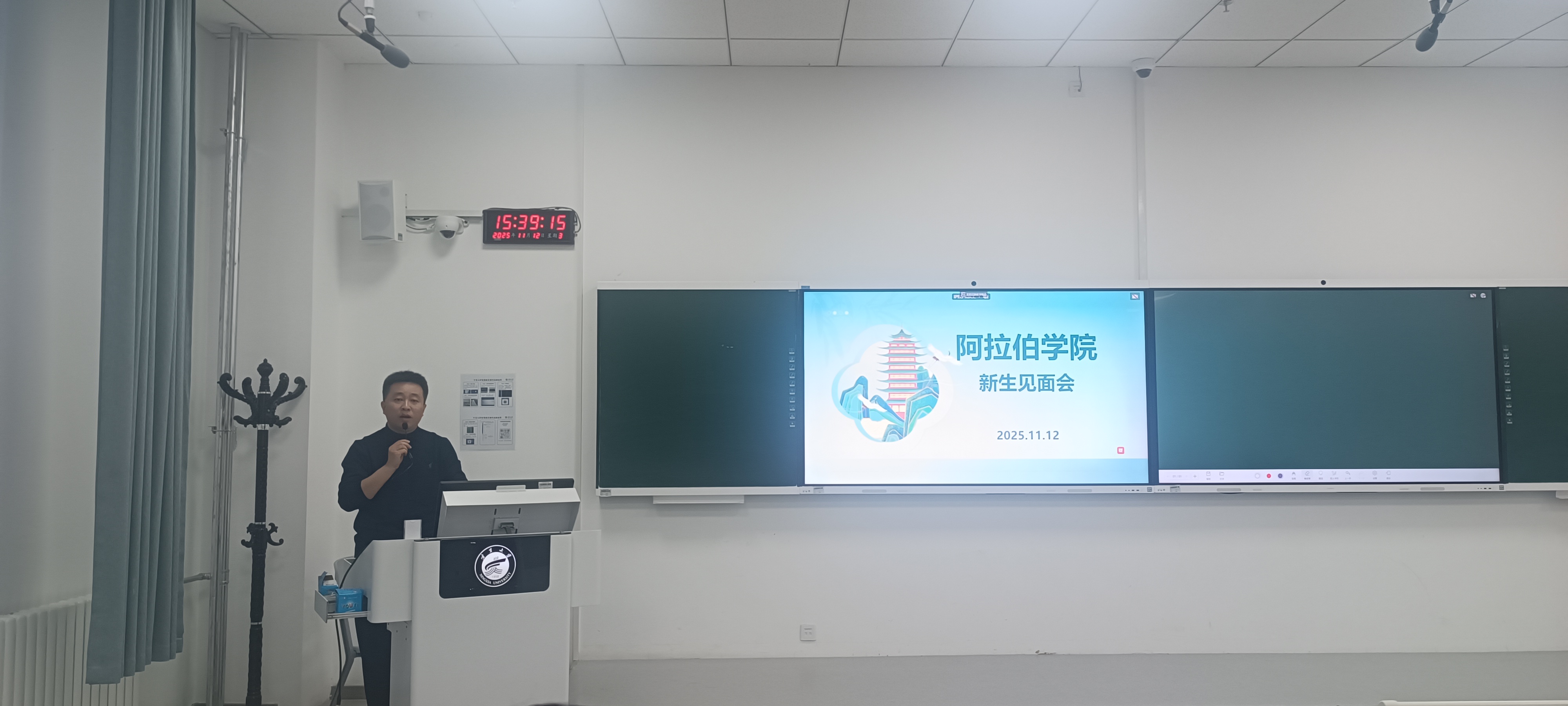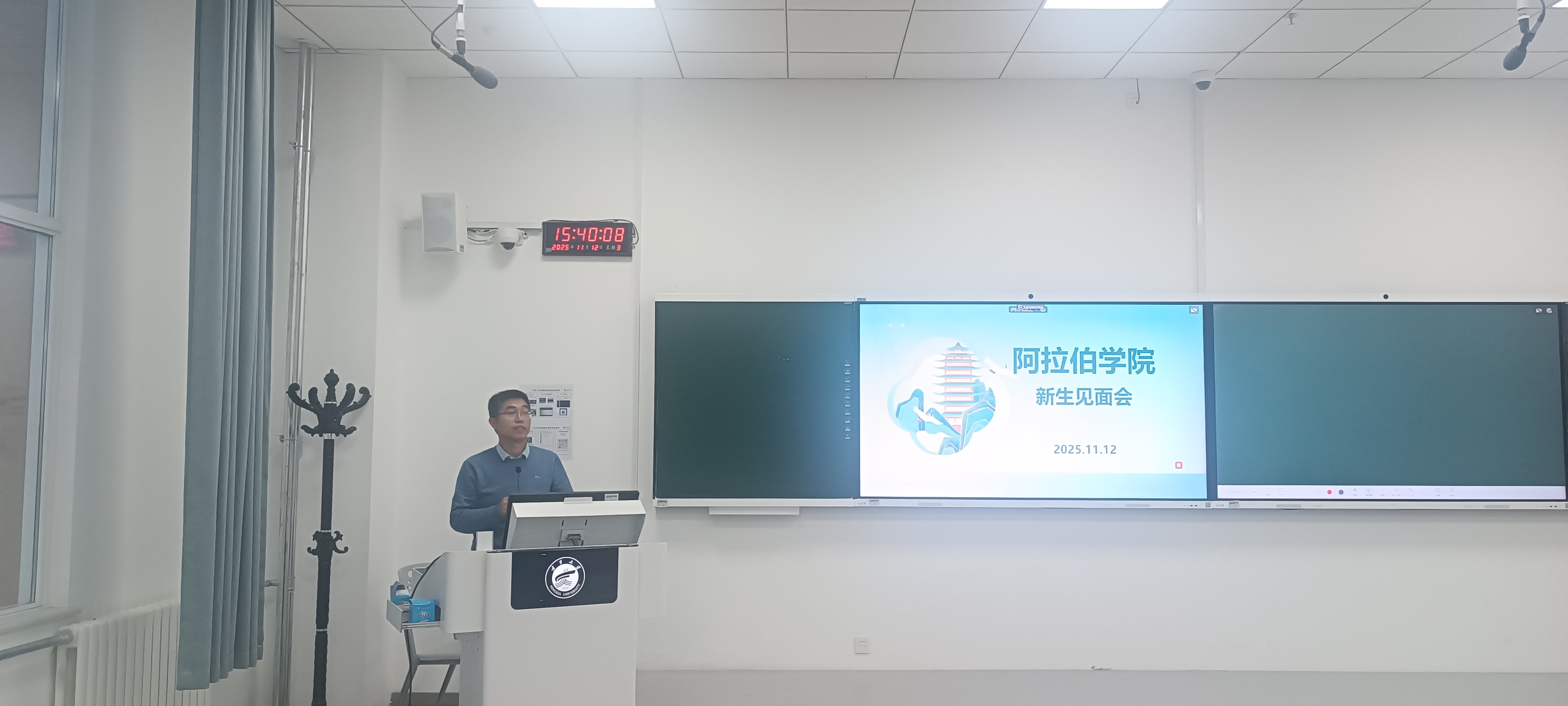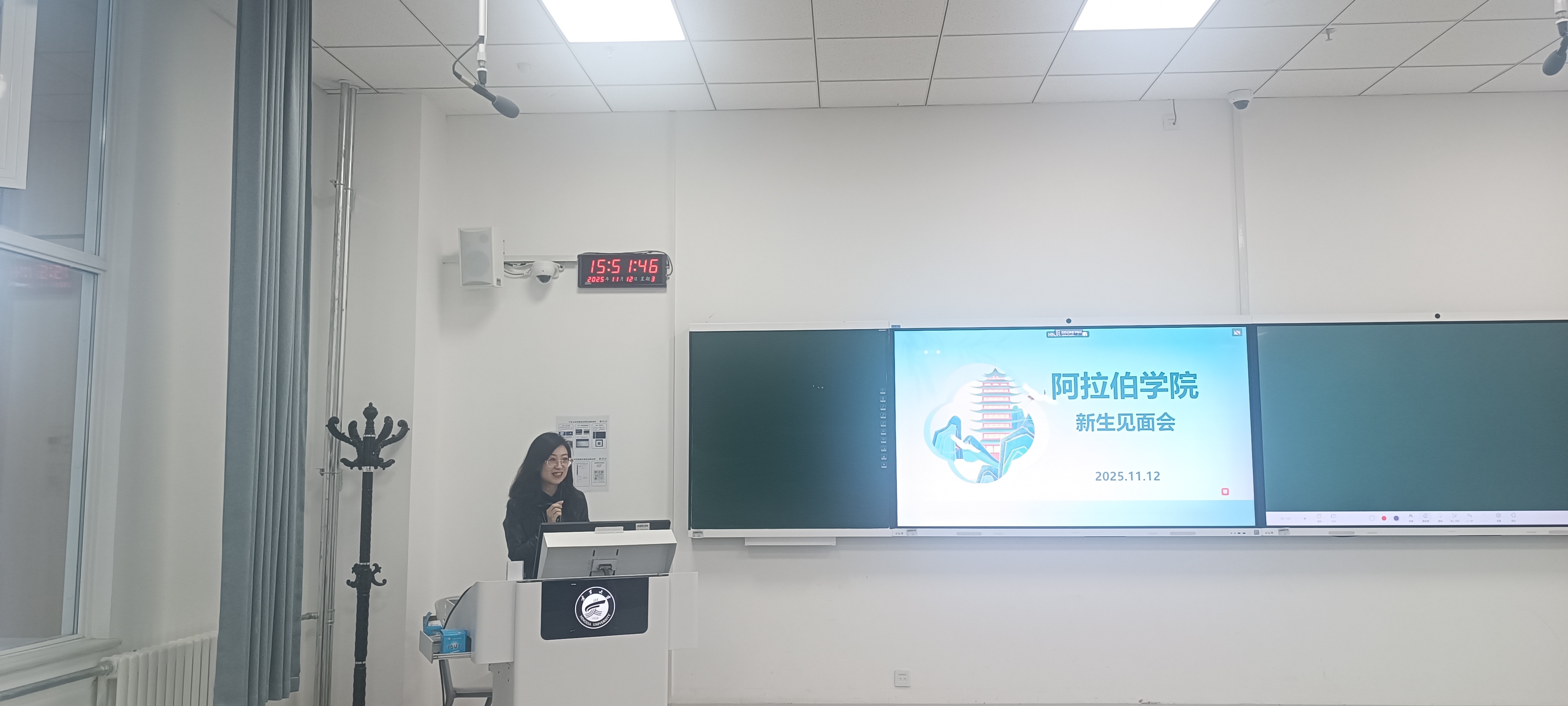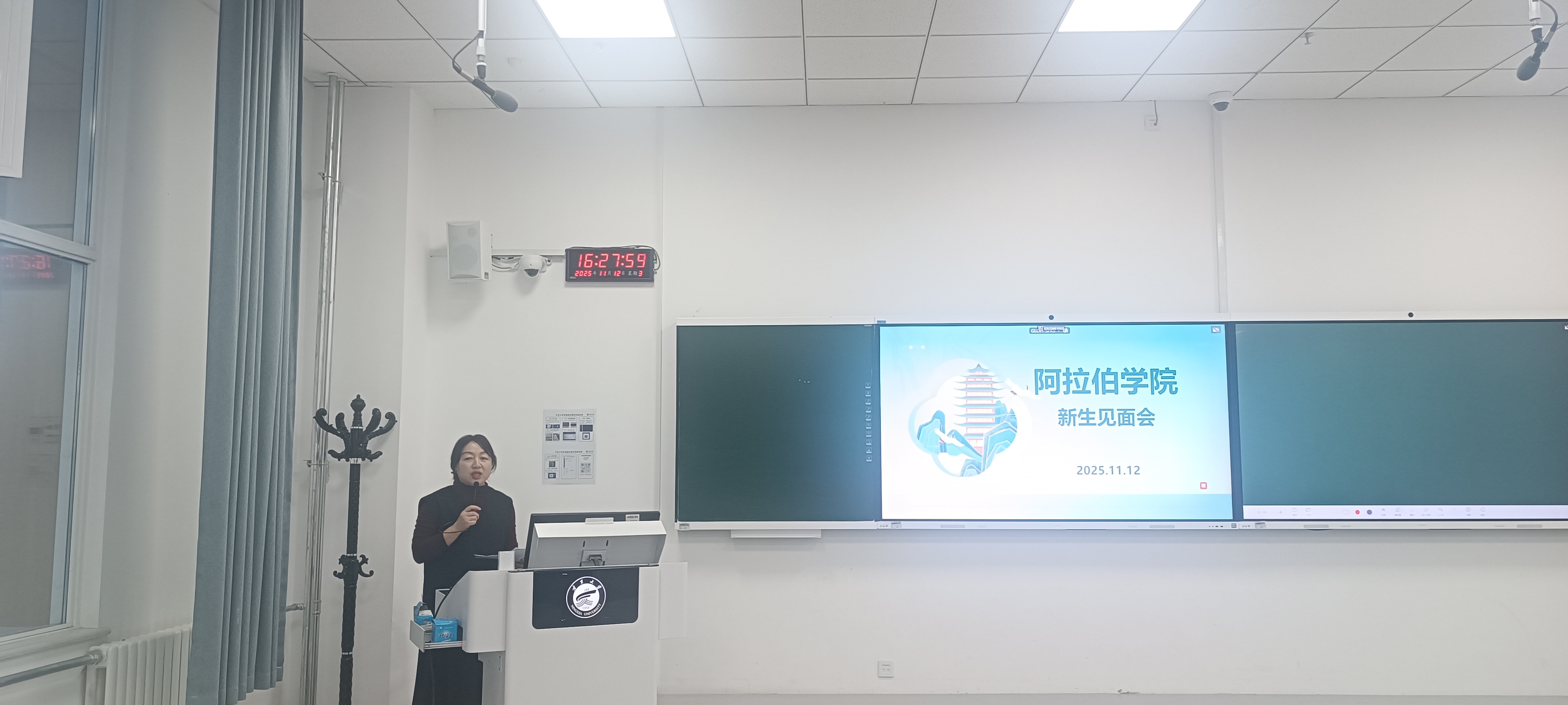 随后,分管科研工作的副院长周丽娅就阿拉伯语专业的学科发展历程、师资力量、科研特色与成果向新生们做了详细介绍。他深入解读了本专业的培养方案、课程体系以及未来四年的学习路径与要求,帮助同学们宏观把握专业学习脉络,明确学习目标与方向,为即将开始的系统化专业学习奠定了坚实的基础。