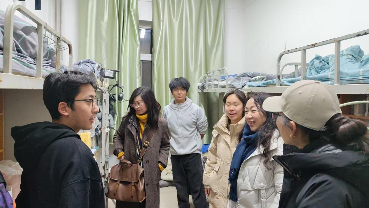 随后,在走访学生宿舍过程中,学院领导详细查看了学生的住宿环境,仔细询问了同学们的生活起居、宿舍安全、卫生状况以及日常作息等。他们与同学们亲切交谈,关心大家是否适应学校环境,住宿中是否存在设施维修、用水用电等具体困难,并叮嘱同学们要互相关心、互相帮助,共同营造安全、整洁、文明、和谐的宿舍氛围。