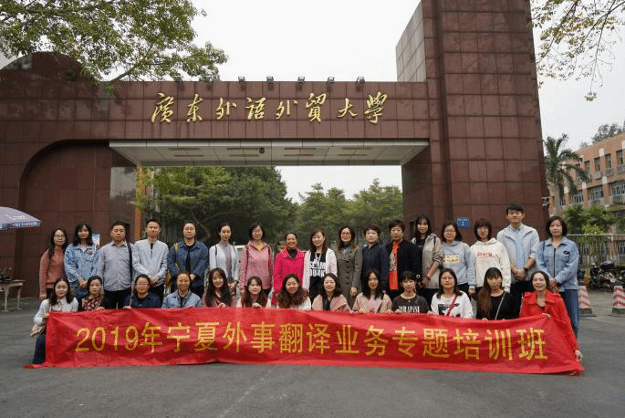 选派教师何祯参加了宁夏外事办为深入学习贯彻习近平外交思想,加强翻译人才队伍建设,在广东外语外贸大学举办的“2019年宁夏外事翻译业务专题培训班”。