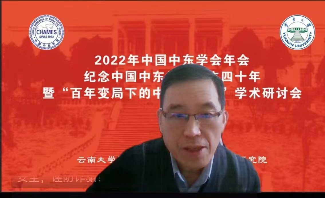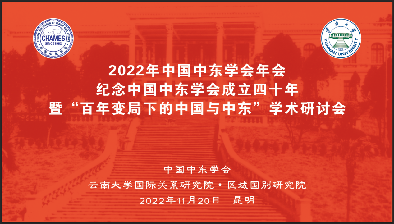 2022年11月20日,由中国中东学会和云南大学国际关系研究院·区域国别研究院联合举办的2022年中国中东学会年会暨“百年变局下的中国与中东”学术研讨会隆重举行。受疫情影响,本次研讨会以线下线上相结合的方式举行。此次研讨会的举办正值中国中东学会年会成立四十年之际。环球娱乐 学术委员会主任黄民兴教授、副院长冯璐璐教授、副院长金忠杰教授、陈玉香老师应邀参加了此次研讨会。