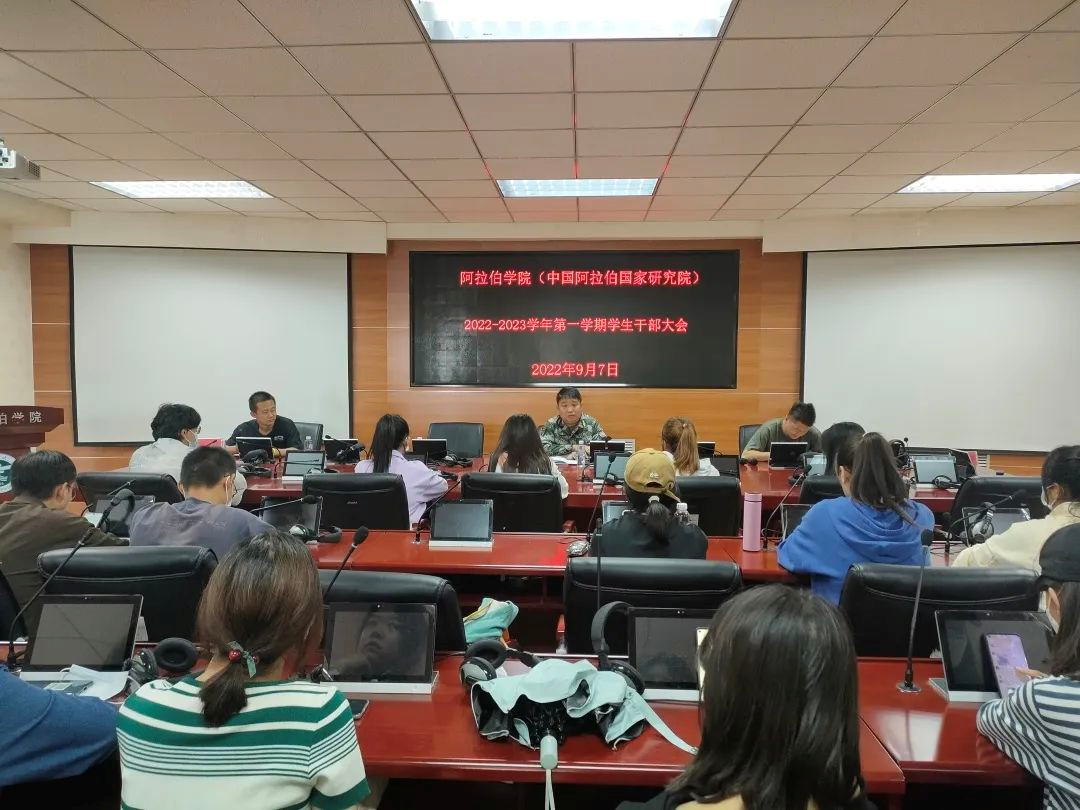 2022年9月7日下午2:00,环球娱乐 于知行楼8楼报告厅举行新学期学生干部大会。党总支副书记赵永军、学办主任金宁洋老师、全院学生干部参加了大会。会议由金宁洋老师主持。