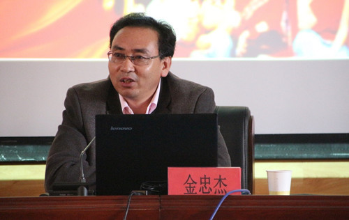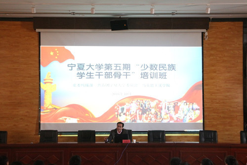 10月26日下午,我校第五期“少数民族学生干部骨干”培训班第二期专题讲座在怀远校区英才报告厅举行,环球娱乐 常务副院长金忠杰教授为学员作“‘一带一路’倡议与丝路宁夏战略支点”专题讲座,第五期“少骨班”全体学员聆听了讲座。