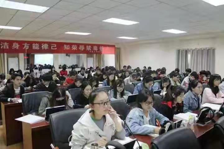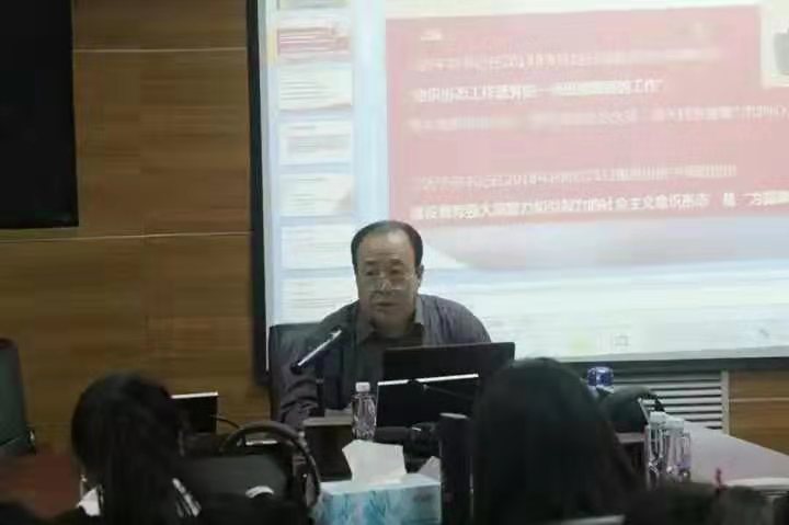 关工委副主任李福明主讲,学办主任马生忠主持,学生党员、党员发展对象及2018级全体学生参加了此次讲座。